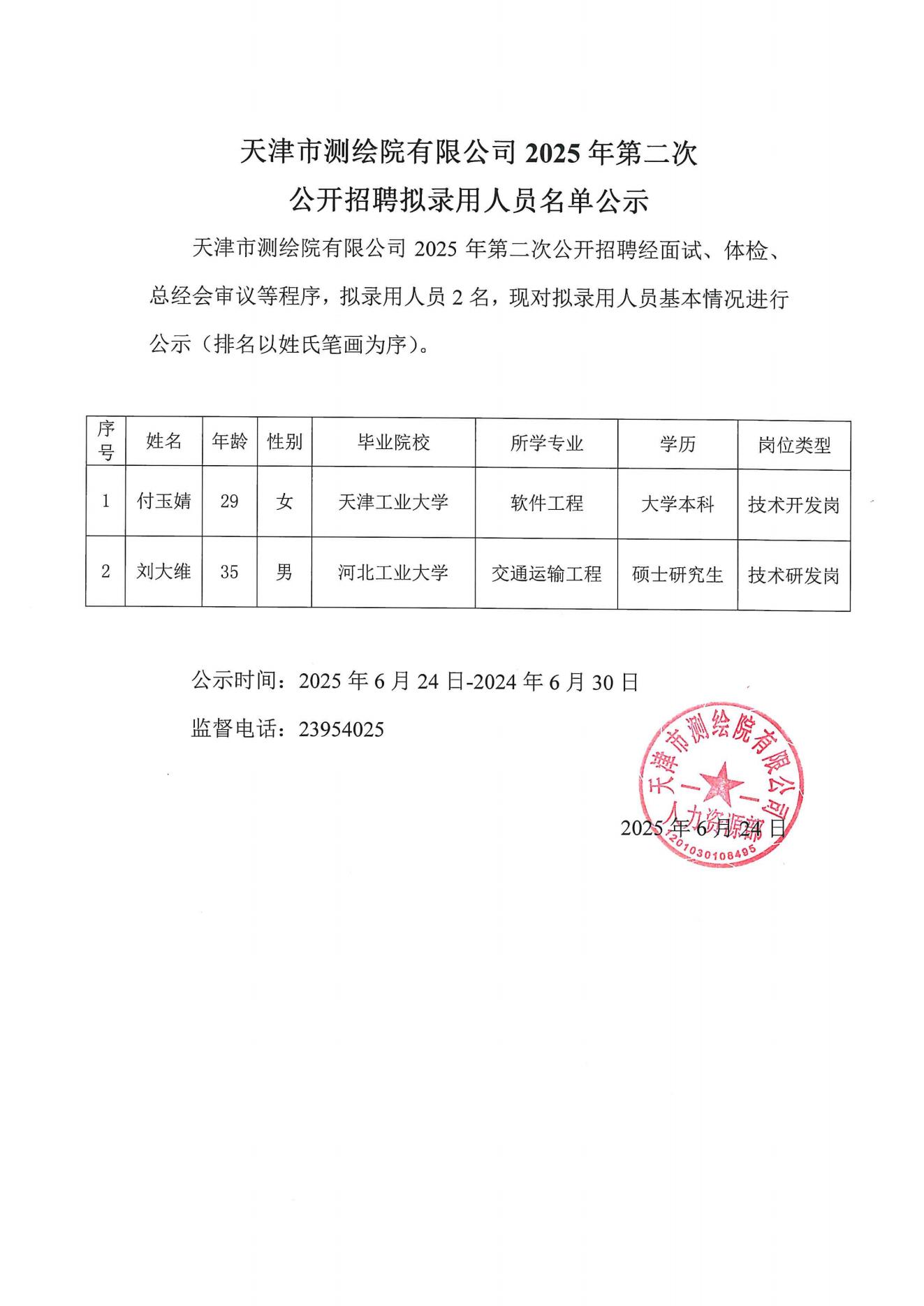 上一篇:天津市测绘院有限公司2025年第二次公开招聘拟录用人员名单公示